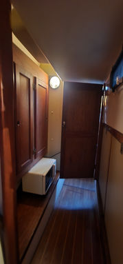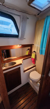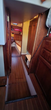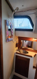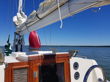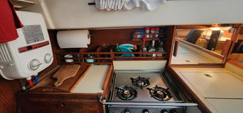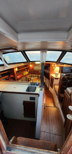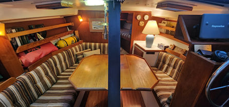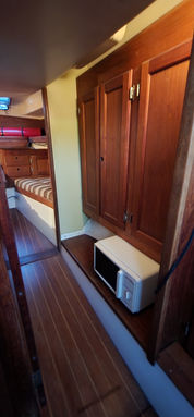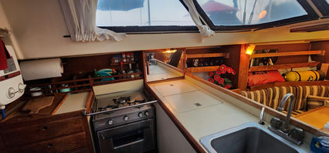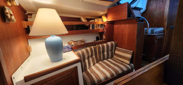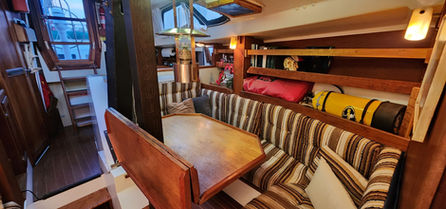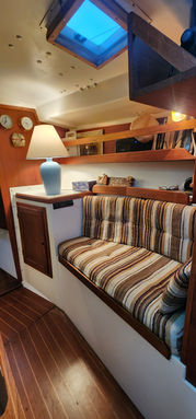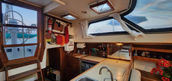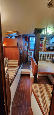 Aside from its bluewater capability it has some very nice features. All the tanks are under the floor in the center of the boat and easily accessible. The retractable keel, inside steering, self-tending jib, queen size aft berth, ability to lower the mast, and feeling of light and spaciousness inside are all pluses when on a long cruise.She sails stiffly, heeling less than you'd think, and handles weather and strong winds well. There is great storage all over the boat. It feels much larger than 34.5 feet and definitely has livability.